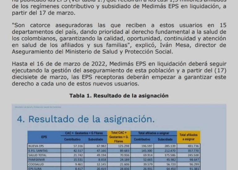 NUEVAS EPS PARA AFILIADOS DE MEDIMÁS